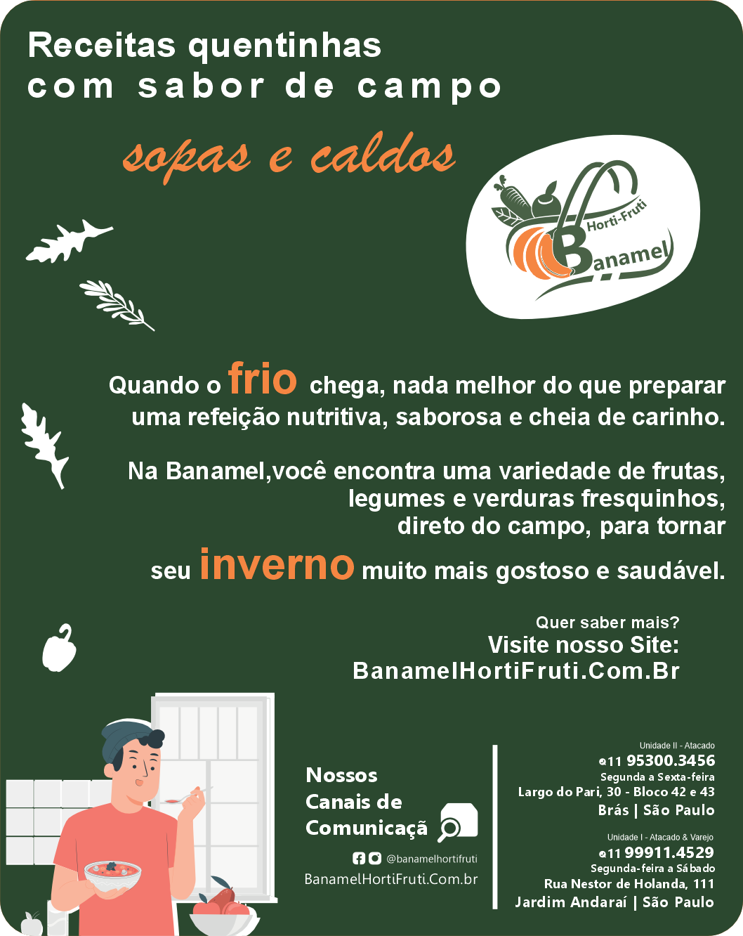 Quando o frio chega, nada melhor do que preparar uma refeição nutritiva, saborosa e cheia de carinho. 🌿 Na Banamel, você encontra uma variedade de frutas, legumes e verduras fresquinhos, direto do campo, para tornar seu inverno muito mais gostoso e saudável.
