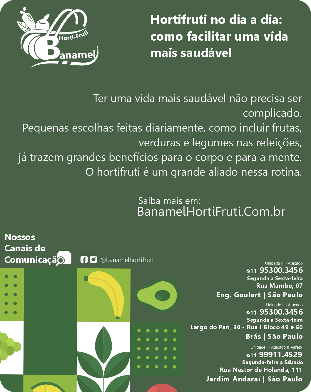 O consumo diário de hortifruti garante vitaminas, minerais e fibras essenciais para o bom funcionamento do organismo, ajudando na digestão, na imunidade e na prevenção de diversas doenças.